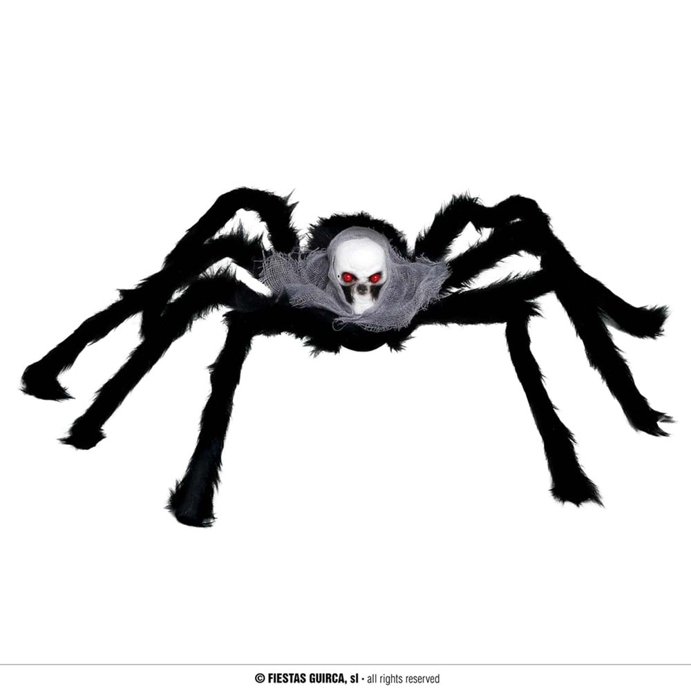 Merimangë dekoruese për halloween, e frikshme dhe e neveritshme me një kafkë njeriu dhe sy të kuq. Ky dekorim unik do të sjellë një atmosferë autentike tmerri dhe misteri në hapësirën tuaj. Ky kombinim intrigues ngjall frikë dhe habi tek çdo person që ndeshet me këtë dekorim të pazakontë në rrugë. Merimanga e zezë duket shumë autentike dhe madhësia e saj mbresëlënëse prej 60 cm e bën atë jo vetëm një element dekorativ mbresëlënës për festën e halloween.
