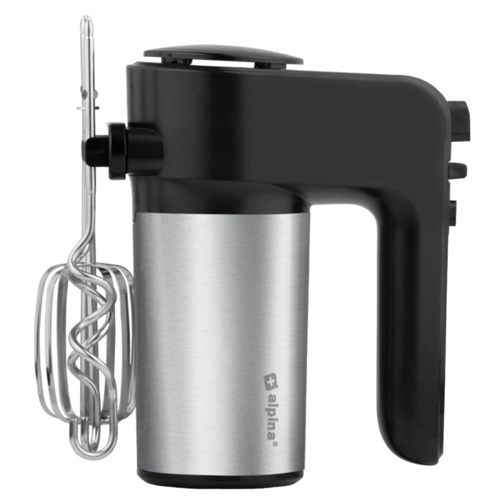 Një mikser dore është një pajisje kuzhine e domosdoshme për këdo që pëlqen gatimin ose pjekjen. Ky mikser dore me ngjyrë argjendi nga Alpina vjen me një kamxhik, kamxhik për brumosje dhe një mbajtëse të integruar ruajtjeje në të cilën mund të klikoni aksesorët kur nuk i përdorni. Në këtë mënyrë ju mbani gjithçka mjeshtërisht së bashku. Përzierësi vjen me një zgjedhje prej 6 cilësimeve të ndryshme të shpejtësisë dhe një funksion turbo. Kjo ju lejon të rrahni çdo brumë derisa të bëhet me gëzof. Përzierësi elektrik i dorës ka një konsum maksimal prej 400 Watts dhe ka përmasa të vogla, kështu që mund ta vendosni në çdo kuzhinë.