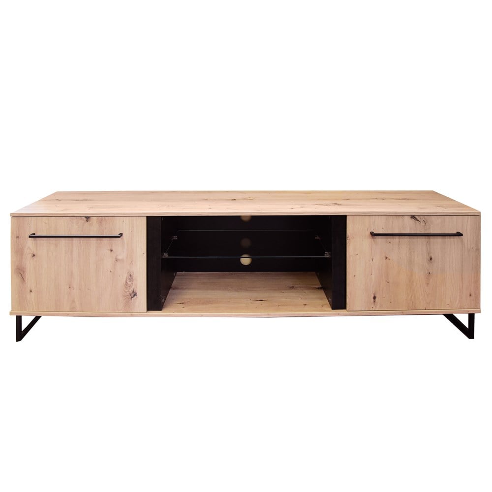 Mobilia e televizorit, SARDINIA, është një kombinim të lisit artizanal dhe dekorit me ngjyrë të zezë, është një kombinim i ngrohtësisë natyrore dhe antik me karakteristikat e stilit industrial në dizajnin e brendshëm. Dy segmente anësore të mbyllura, si dhe një pjesë e hapur me një raft xhami, kontribuojnë në mënyrë efektive në organizimin funksional të dhomës së ndenjes. Është një pjesë e koleksionit SARDINIA me të njëjtin emër, me të cilin formon një tërësi të brendshme, dhe që sjell një pasqyrim të një stili jetese autentik dhe të guximshëm në shtëpinë tuaj. Ekziston mundësia e instalimit të ndriçimit shtesë.