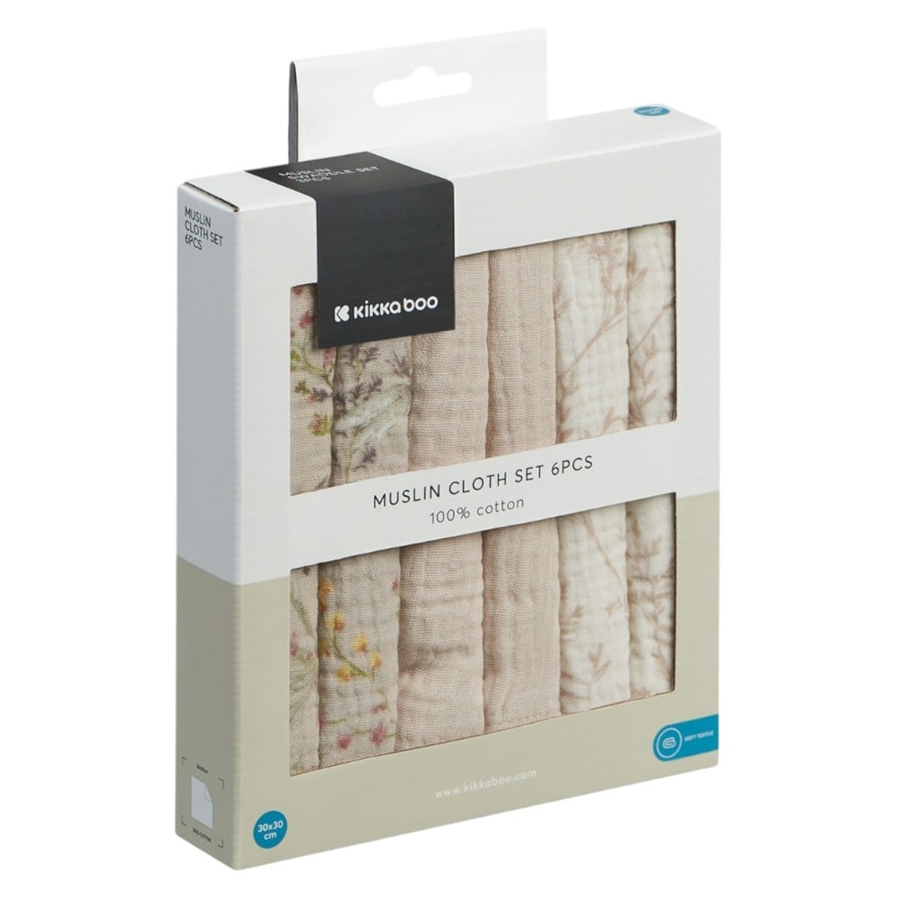 Napa pambuku për bebe, Kikka Boo, Secret Garden, bezhë, 30x30 cm, 6 copë, 1 pako