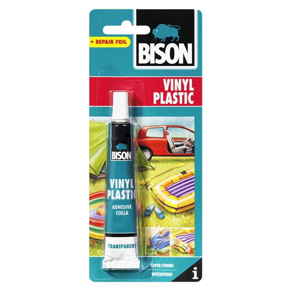 Ngjitësi i plastikës, Bison është super i fortë, i papërshkueshëm nga uji dhe transparent kur thahet. I përshtatshëm për plastikë të butë, vinyl, PVC të butë dhe lëkurë artificiale. Ideale për riparimin e varkave me fryrje, shtretërve dhe pishinave, mushamave PVC, tendave, pëlhurave, perdeve të dushit, mbulesave të sediljeve, shtretërve me ujë, veshjeve të pellgjeve dhe rripave. Ngjitësi nuk është i përshtatshëm për fletë PE.