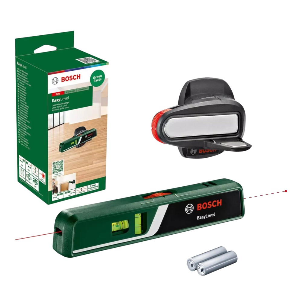 Niveli lazer EasyLevel me madhësi ideale për tu mabjtur në xhep, është shumë i lehtë për t'u përdorur, pasi kombinon në mënyrë të perfekte funksionalitetet e niveleve dhe matjes lazer. E përkryer për një sërë punësh, ka një nivel gabimi prej ± 0,5 mm/m dhe projekton linja ose pika lazeri horizontale, vertikale ose diagonale. Ky mjet i dobishëm është i përsosur për vendosjen e perdeve, instalimin e rafteve ose varjen e fotografive dhe kur përdoret si lazer, për transmetimin e lartësive të sakta rreth dhomave për instalimin e çelsave dhe prizave të dritës. Falë një mbajtëse muri fleksibël dhe magneteve në vegël, EasyLevel mund të fiksohet mirë ose të vendoset me lehtësi në të gjitha sipërfaqet.