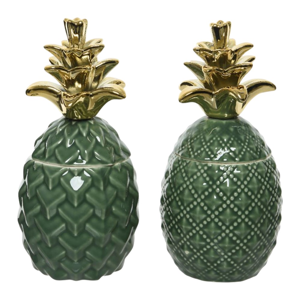 Objekt dekorativ, Pineapple, Porcelan, Jeshile, 11x11xH21.5 cm