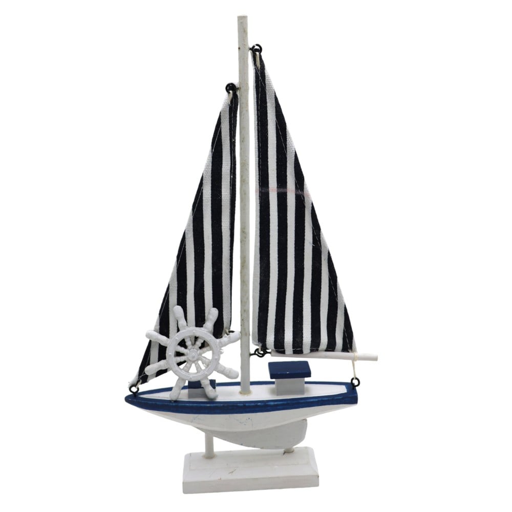 Po vlerësoni:Objekt dekorues, Varkë, druri, e bardhë/blu, 15x3.5xH26 cm