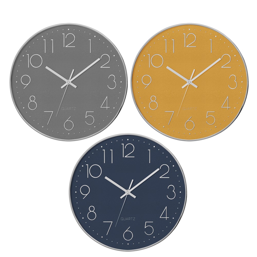 Kjo orë muri e bërë nga polipropileni dhe qelqi, ka një diametër prej 30 cm. Ajo bën një zgjidhje perfekte të projektimit për të pajisur çdo hapësirë në shtëpi, zyrë apo dyqanin tuaj. Vjen në 3 ngjyra të ndryshme, të verdhë, blu dhe gri, ku mund të merrni ngjyrën që ju shkon me ambientin tuaj.
