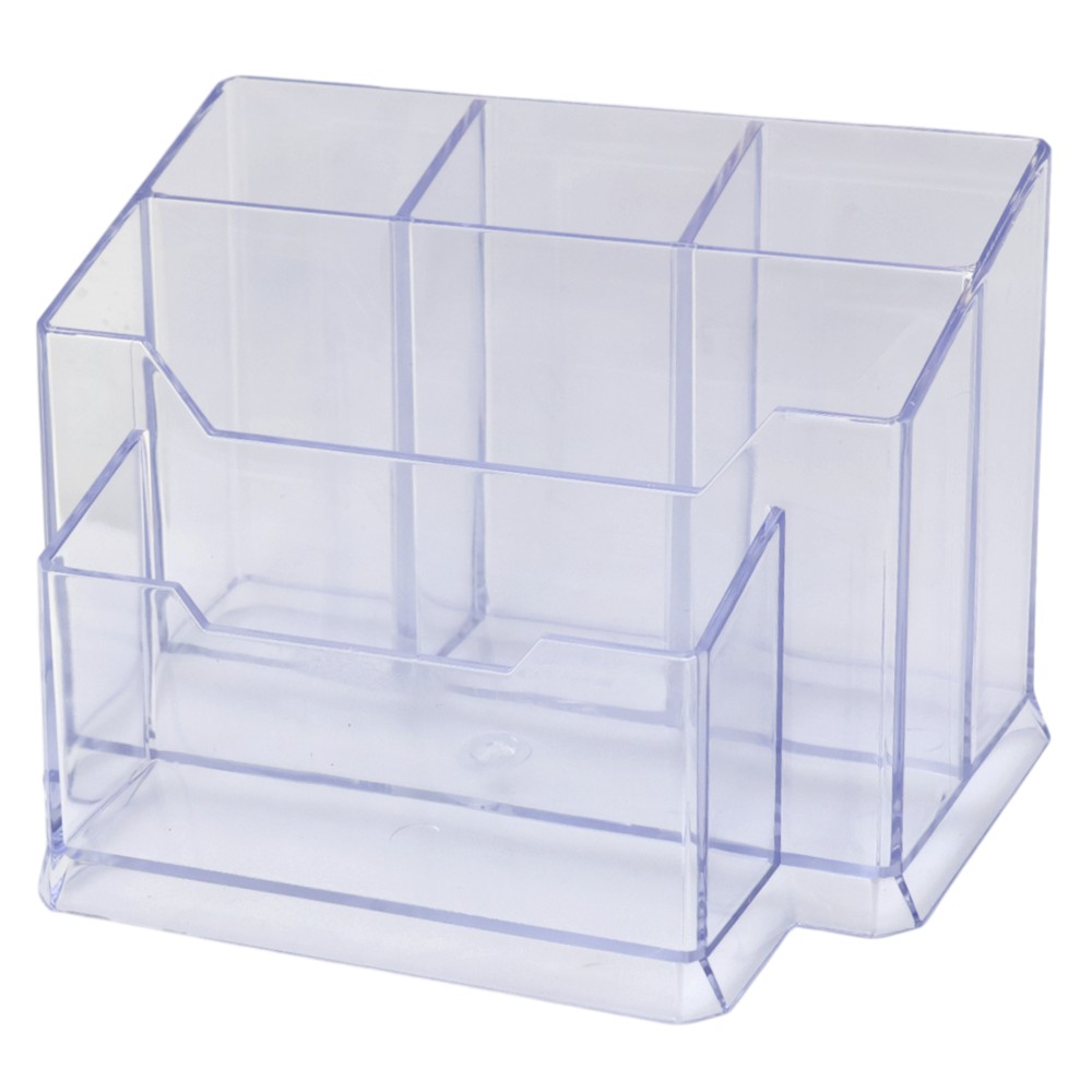 Ky organizues praktik është ideal për të mbajtur stilolapsat, lapsat dhe aksesorët e tjerë të zyrës të organizuar dhe gjithmonë pranë dorës. I bërë nga plastikë transparente, mund të shihni lehtësisht përmbajtjen e tij. Me dimensione 15x10x10 cm, përshtatet lehtësisht në tavolina apo rafta.