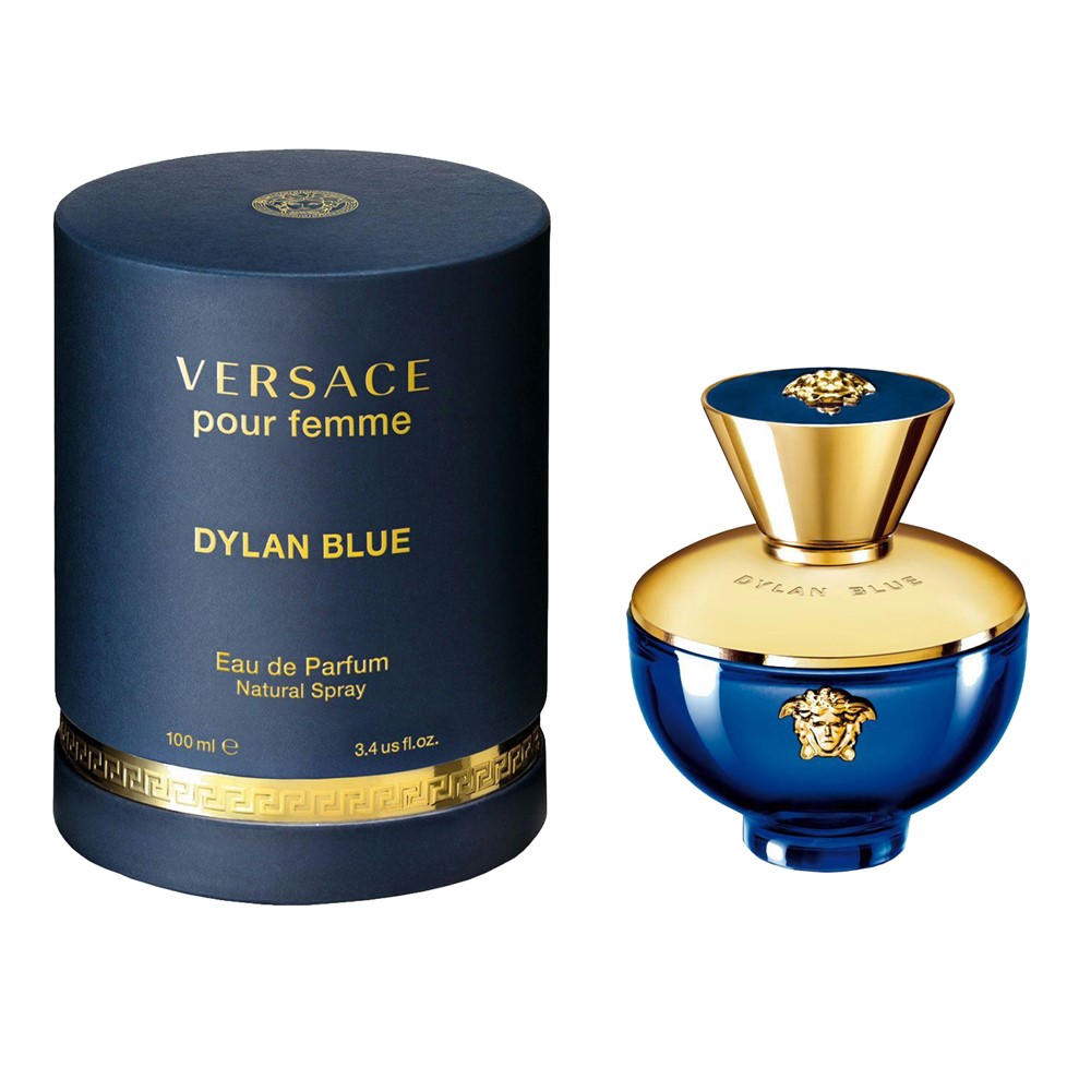 Parfum për femra, Dylan Blue, Versace, EDP, qelq, 100 ml, blu dhe gold, 1 copë