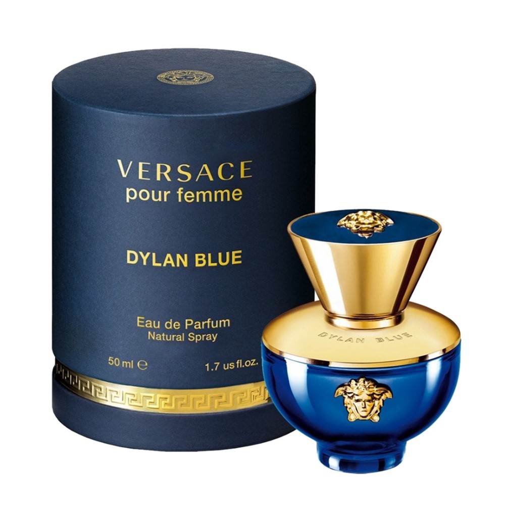 Parfum për femra, Dylan Blue, Versace, EDP, qelq, 50 ml, blu dhe gold, 1 copë
