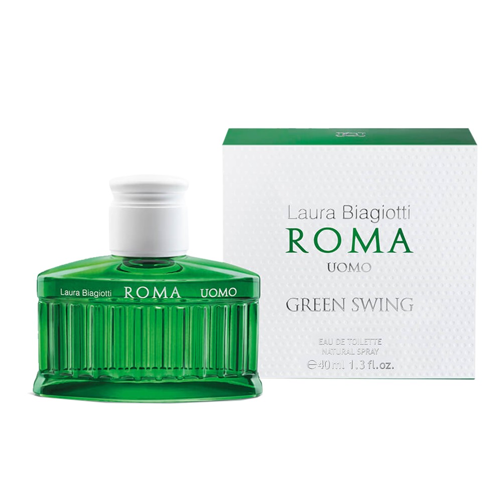 Parfum për meshkuj, EDT, Roma Uomo, Green Swing, Laura Biagiotti, qelq, 40 ml, e gjelbër dhe e bardhë, 1 copë