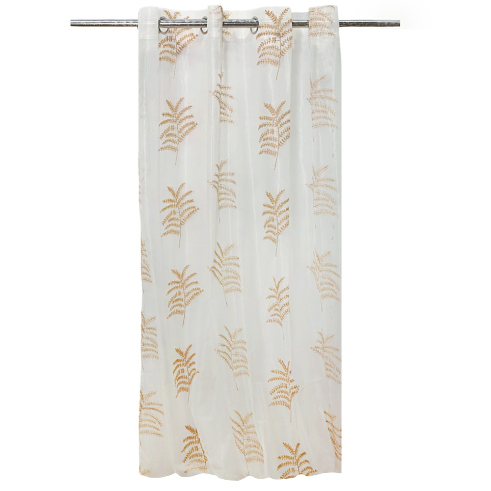 Perde e hollë me unaza, 100% poliestër, e bardhë/floriri, 140x260 cm