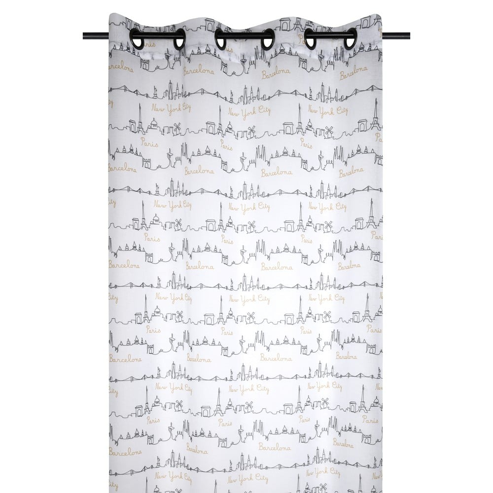Perde e hollë me unaza Roadtrip, poliestër, e bardhë me dizajne, 140x260 cm