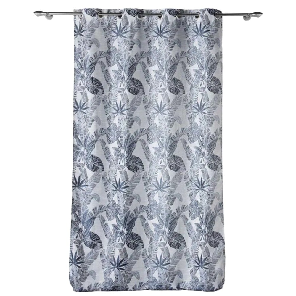 Perde e plotë me unaza, 100% poliestër, e bardhë me motive florale blu, 140x260 cm