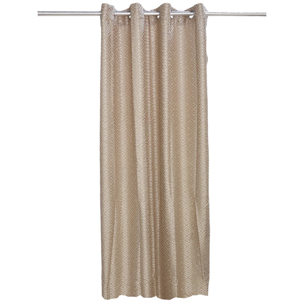 Perde e plotë me unaza, 100% poliestër, jacquard, bezhë, 140x260 cm