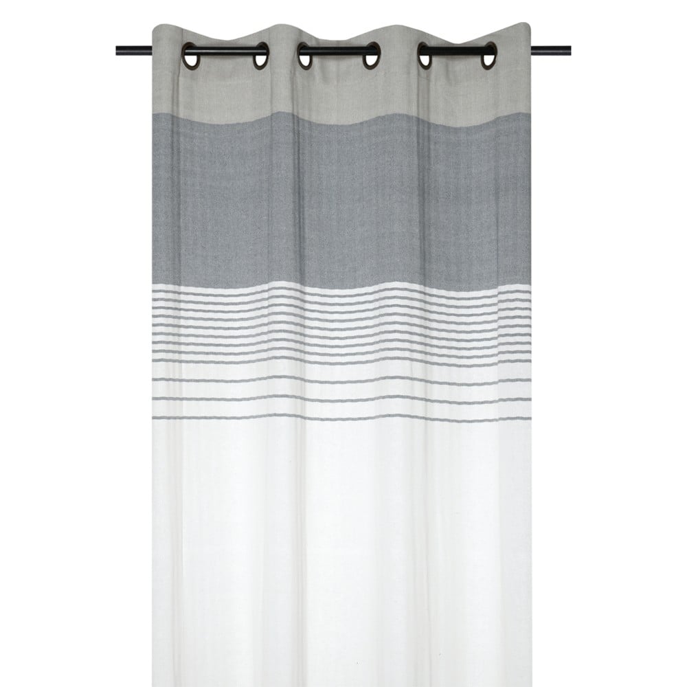 Perde e plotë me unaza Escale, pambuk, e bardhë dhe gri, 140x260 cm