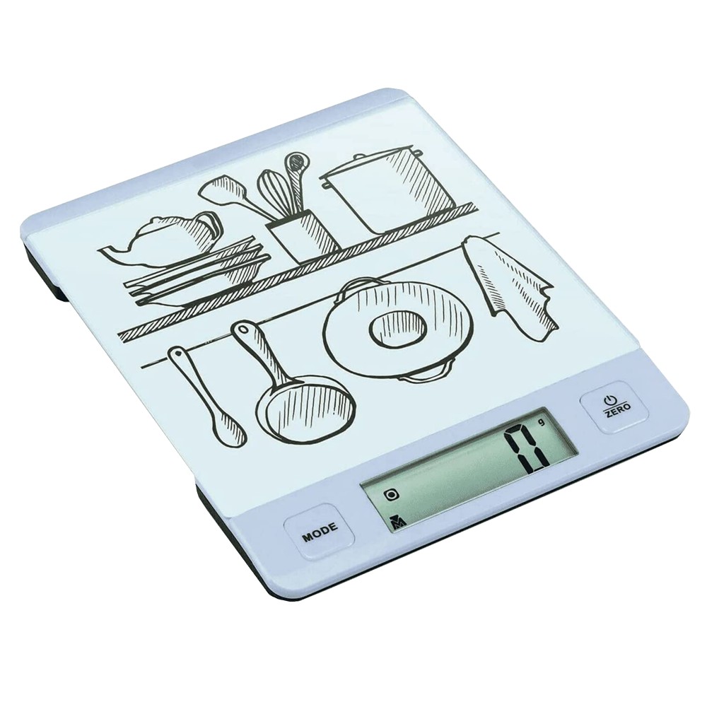 Peshore kuzhine Melchioni me pjate xhami. Sensori me precizion të lartë. Pllakë në xhami të kalbur me trashësi 4 mm. Ekran i madh LCD 58x27 mm. Matja e volumit për ujë / qumësht / vaj. Kapaciteti: 10 kg. Njësia matëse: gr/ml. Treguesi i mbingarkesës dhe statusi i baterisë. Me bateri (1 x CR2032)
