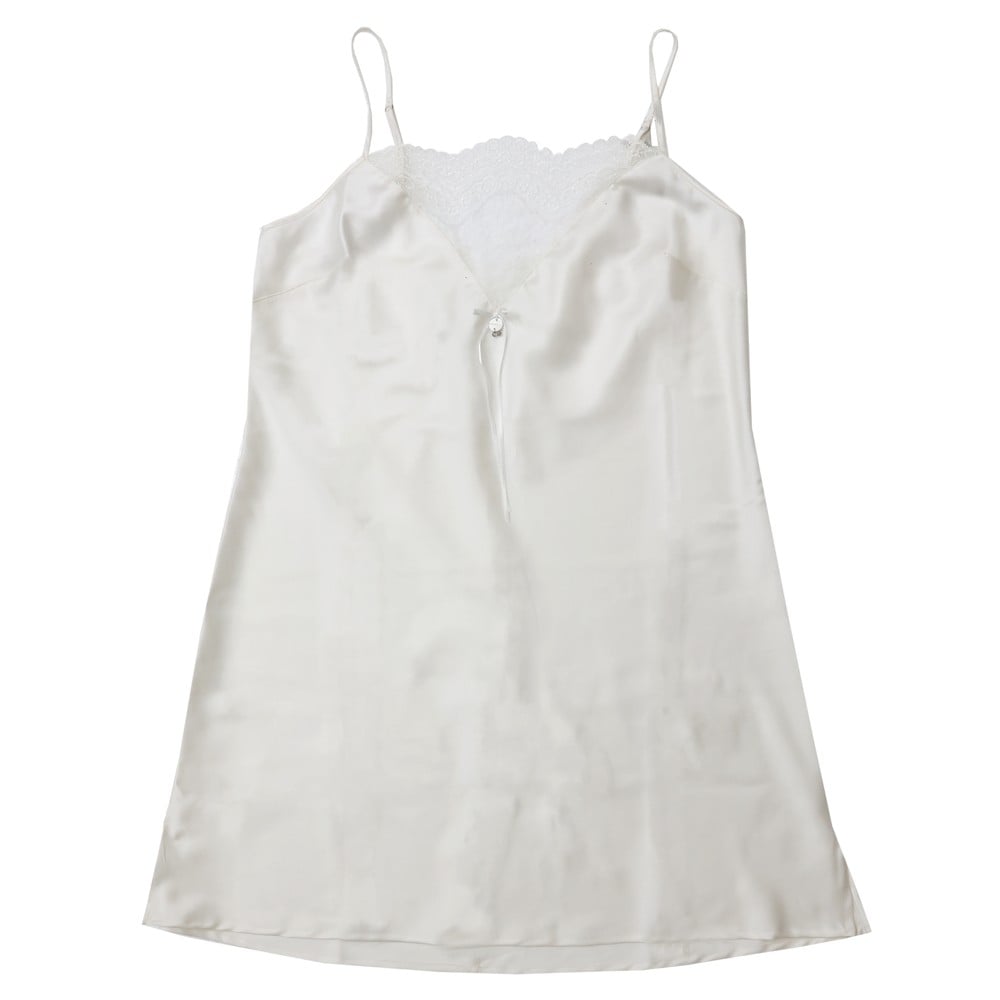 Fustan gjumi per vajza me rripa prej materiali saten ne ngjyre te bardhe