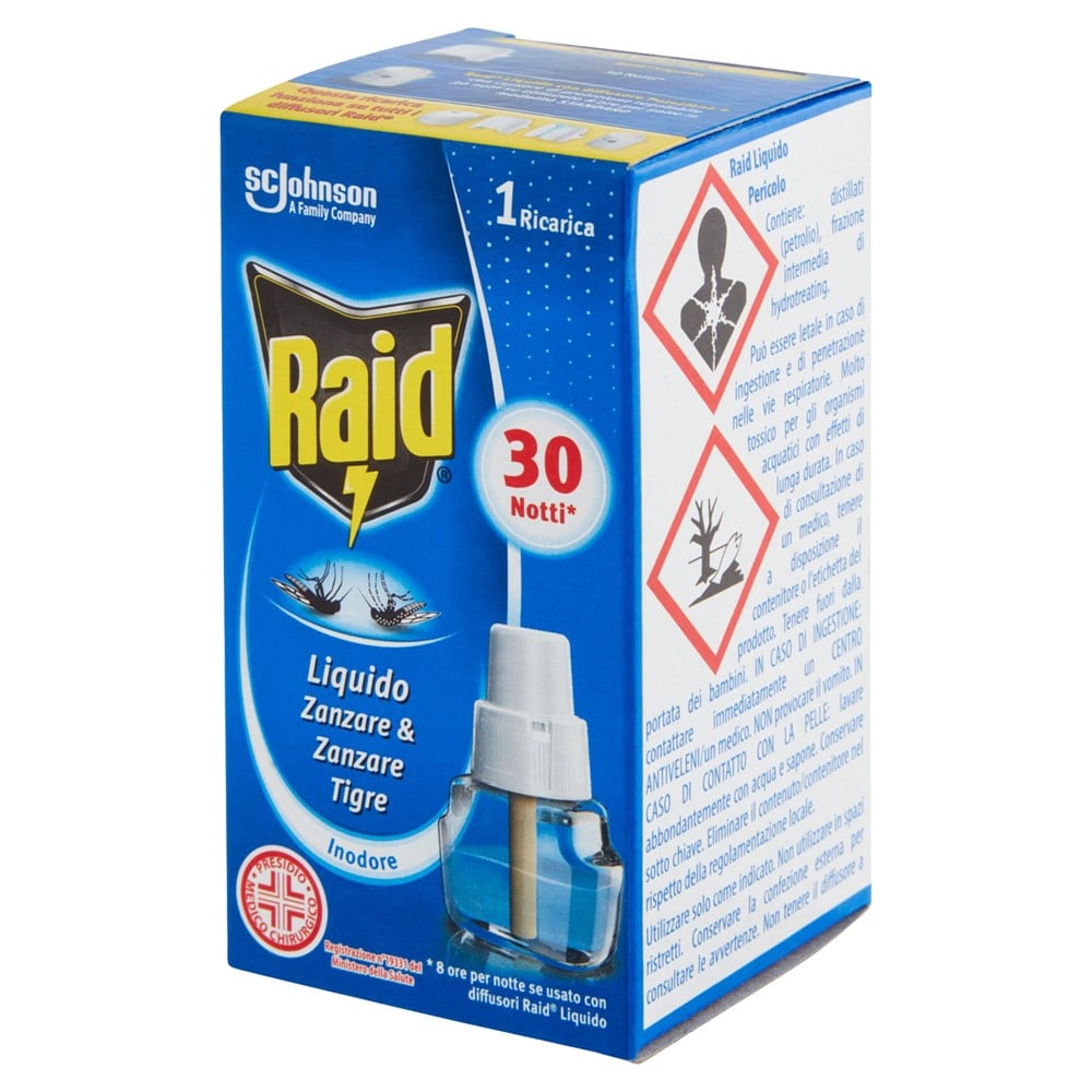 Lëngu i pajisjeve elektrike Raid® është një mbrojtje efektive dhe e besueshme si nga mushkonjat e zakonshme ashtu edhe nga mushkonjat tigër. Punon shpejt dhe afatgjatë dhe nuk ka erë apo tym. Përbërësi aktiv zgjat deri në 45 netë nga 8 orë. Lëngu i pajisjes Raid® është efektiv në dhoma deri në 30 m², efektiv edhe me dritare të hapur dhe drita të ndezura, duke ju siguruar kështu mbrojtje kundër mushkonjave të bezdisshme për një gjumë të mirë. Niveli i lëngut mund të monitorohet lehtësisht dhe kur shishja është bosh, thjesht zëvendësojeni me një mbushje të re.