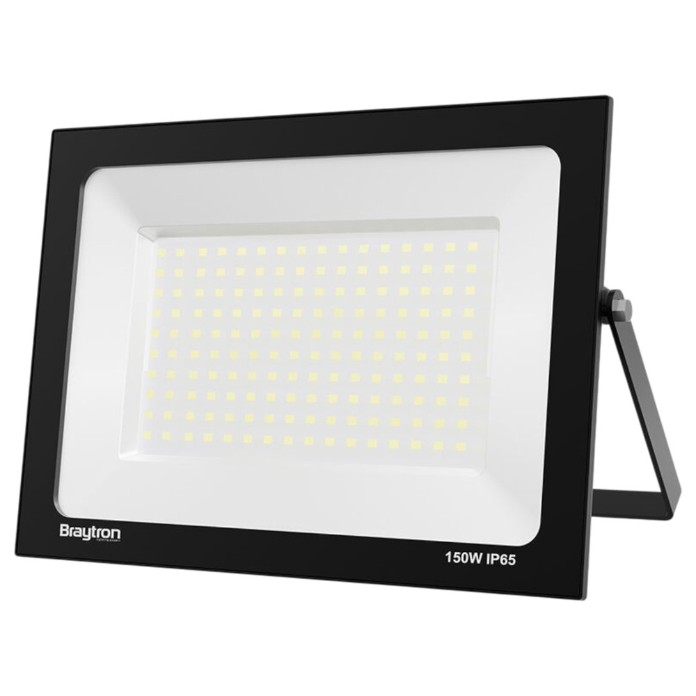 Prozhektor LED Braytron 150W, me dritë të bardhë të ftohtë 6500K dhe intensitet ndriçimi 13,000 lumen. Punon në tension 220-240V dhe ka mbrojtje IP65 ndaj ujit dhe pluhurit. Ideal për ndriçim të jashtëm në hapësira të mëdha, me efikasitet të lartë dhe jetëgjatësi të gjatë.