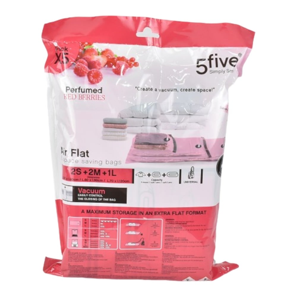 Qeset me vakum janë zgjidhja ideale për problemin e hapësirës së lirë në shtëpi. Me këto qese paketimi me vakum rrobat do të jenë të mbrojtura nga lagështia, mola dhe do të jenë të lehta për t'u rregulluar në dollapë. Gjithashtu, qeset janë të aromatizuara me aromë vanilje, kështu që rrobat e ruajtura në këto çanta do të kenë një aromë të freskët. Seti përmban 2 çanta S: 50 x 60 cm, 2 çanta përmasat M: 60x80 cm, 1 çanta L. 70 x 120 cm.