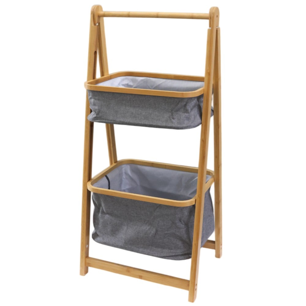 Rafti shumëfuksional "Kitami" i ndërtuar me strukturë bambuje do i japë banjës tuaj një pamje moderne dhe një ndjenjë freskie. Druri i bambusë rritet në humiditet të lartë, veti kjo që e ben kete dru tepër rezistent ndaj lagështirës dhe avujve. I përberë nga dy kosha stofi gri që mund të përdoren për magazinimin e rrobave tuaja dhe nga një varëse peshqirash. Përmasat, lartësia 139 cm x gjatësia 42 cm x gjerësia 33 cm.