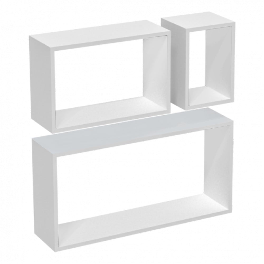 Set me rafte modulare të vetëqëndrueshëm, në formë drejtkëndore, prej materiali melamine, me përmasa 15x25x38 cm, 15x25x17 cm dhe 15x30x60 cm, në ngjyrë të bardhë. Raftet mund të montohen lehtësisht dhe në mënyrë të shpejtë në mure dhe falë sistemit të fshehur të fiksimit, kllapat nuk mund të shihen, nuk ka nevojë për aksesorë për të fshehur bulonat ose vidat dhe instalimi nuk kërkon përdorimin e profileve. Ky set është i përshtatshëm për përdorim në ambientet e brendshme të dhomave të ndenjjes, dhomave të gjumit, zyrave, studiove, etj.
