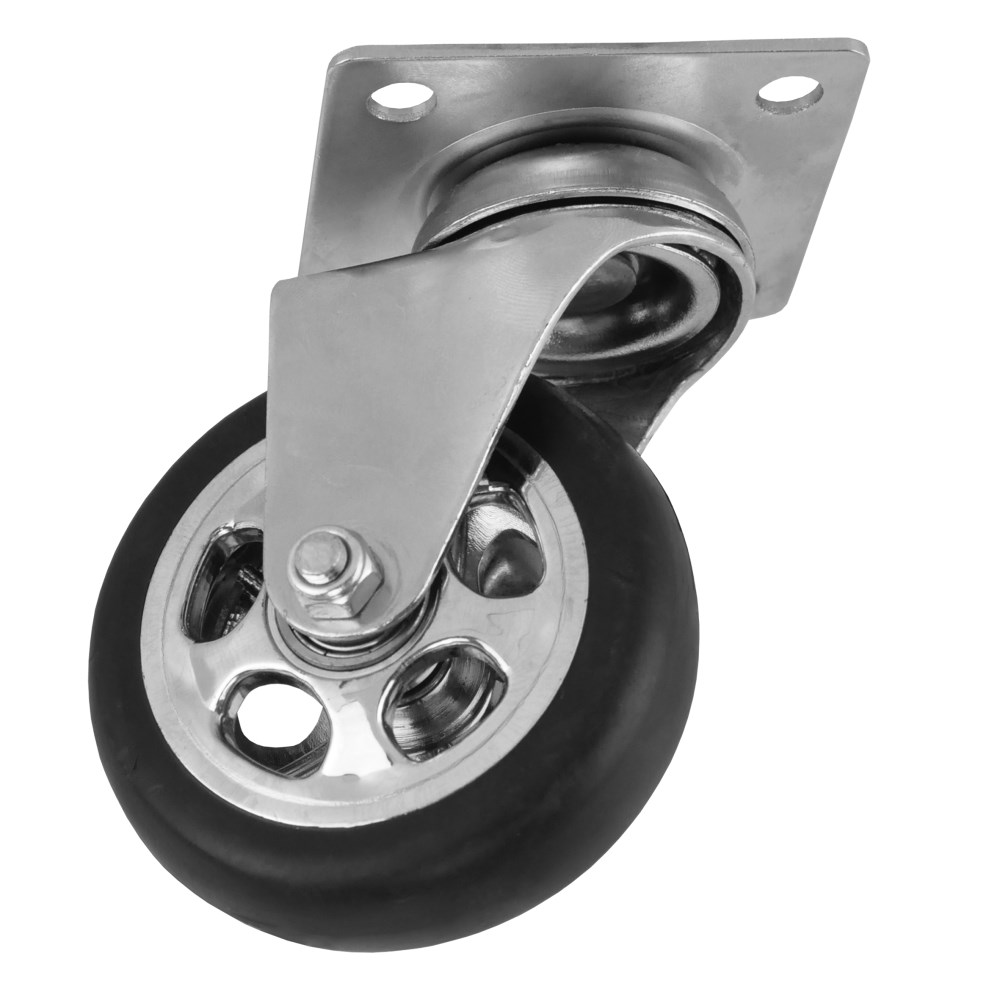 Kjo Rrotë nevoitet për te transportuar lehtësisht pesha në sipërfaqe të rrafshët dhe betoni duke siguruar nje mbrojtje të plotë të siperfaqes. Fale materiali te gomes qe vesh rrotën ne pjesën e jashtme eleminohen të gjitha zhurmat gjatë levizjes. Rrota ka një lëvizshmëri 360 gradë duke bërë të mundur nje levizje në të gjitha drejtimet. peshëmbajtaja për këtë rrotë është 50 kg. Fiksohet lehtesisht ne nje sipërfaqe të rrafshët nëpërmjet bazamentit me katër vida.