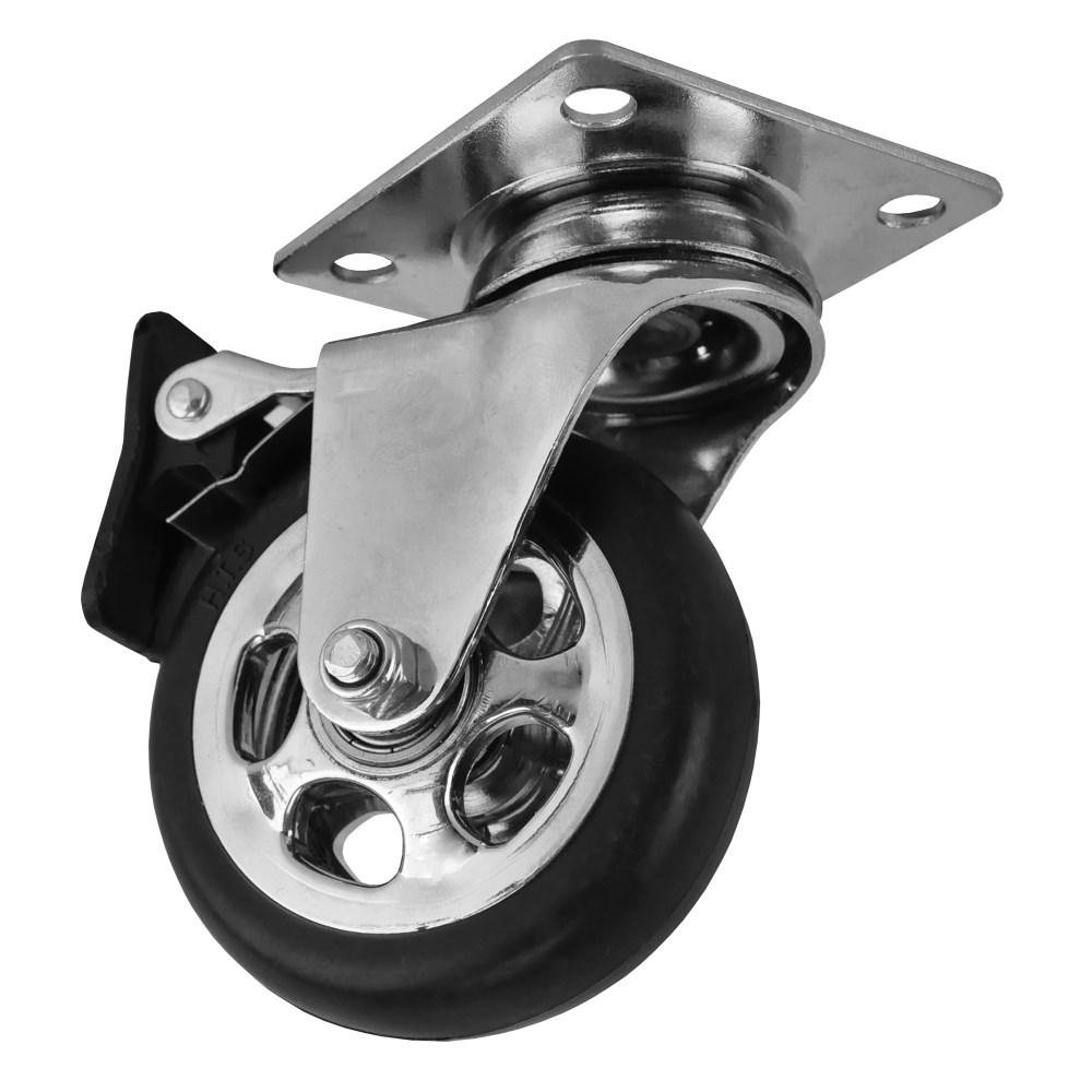Kjo Rrotë nevoitet për te transportuar lehtësisht pesha në sipërfaqe të rrafshët dhe betoni duke siguruar nje mbrojtje të plotë të siperfaqes. Fale materiali te gomes qe vesh rrotën ne pjesën e jashtme eleminohen të gjitha zhurmat gjatë levizjes. Rrota ka një lëvizshmëri 360 gradë duke bërë të mundur nje levizje në të gjitha drejtimet. peshëmbajtaja për këtë rrotë është 50 kg. Fiksohet lehtesisht ne nje sipërfaqe të rrafshët nëpërmjet bazamentit me katër vida.