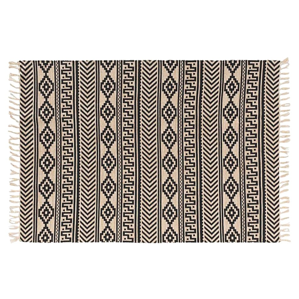 Rrugicë, 85% pambuku dhe 15% jute, bezhë/e zezë, 120x170 cm