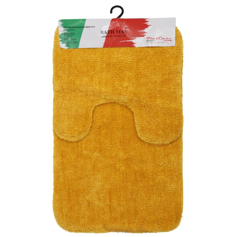 Rrugicë tualeti, set me 2 copë, mikrofibër, e verdhë, 50x48cm; 80x48 cm