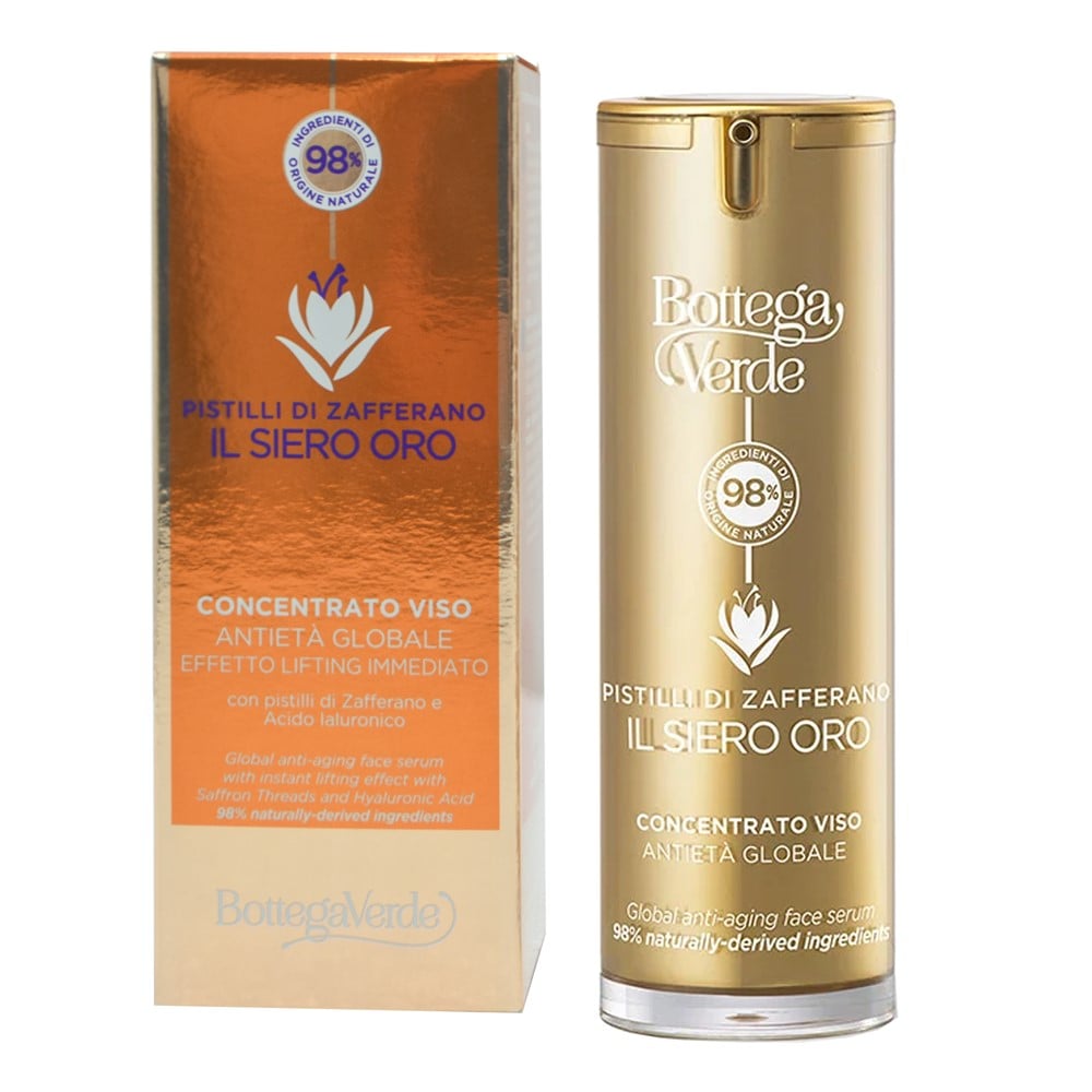 Serum anti-rrudhë për lëkurën e fytyrës, me një formulë me përbërës bimorë, të pasuruar me ekstrakt shafrani. Serumi redukton vijat e holla, rrudhat e lehta dhe njollat e errëta. Formula e pasur me përbërës aktivë pastron poret në thellësi, si edhe minimizon shenjat e poreve dhe plagëve, për një lëkurë të pastër dhe më të lëmuar. Mënyra e përdorimit: Aplikohet direkt në fytyrë të pastër, në mëngjes dhe në mbrëmje, para aplikimit të kremit hidratues.