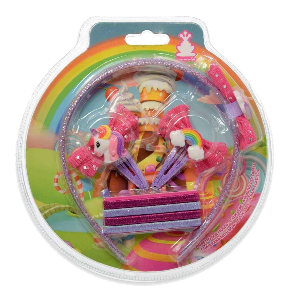 Set aksesorë flokësh, Unicorn, rozë, 3 pjesë, 1 pako
