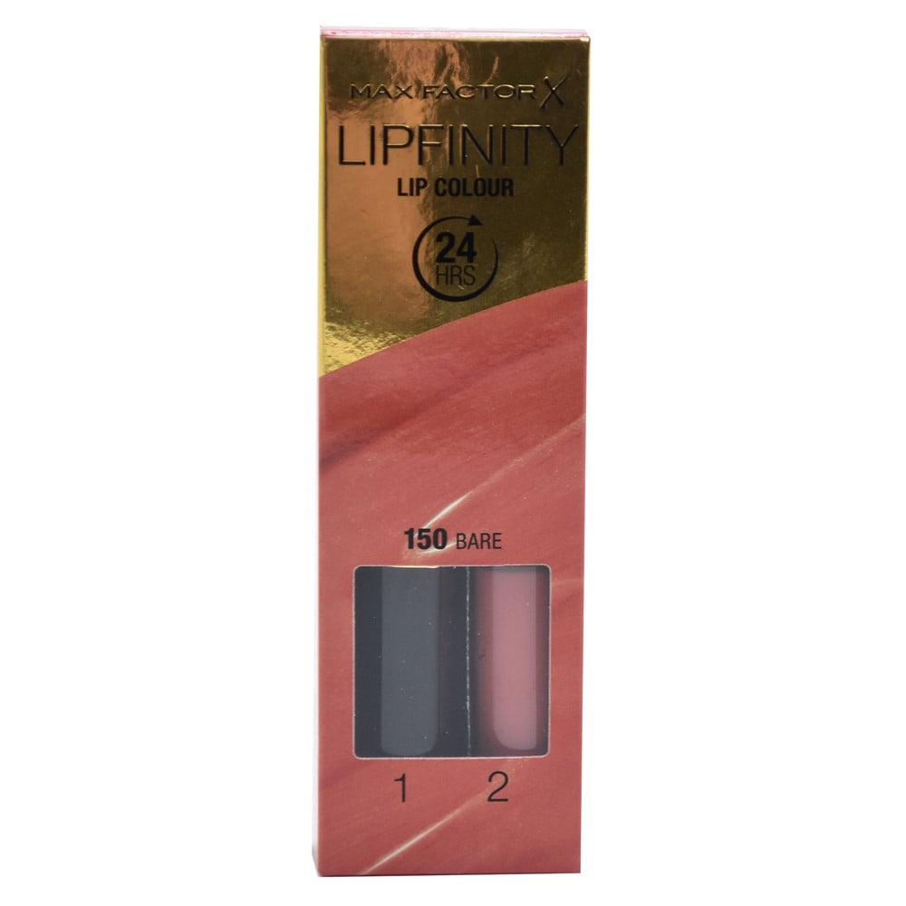 Set buzëkuq i lëngshëm dhe balsam hidratues, 150 Bare, LipFinity, 2-step Long Lasting, Max Factor, plastikë, 2.3 ml + 1.9 g, terrakota, 2 copë