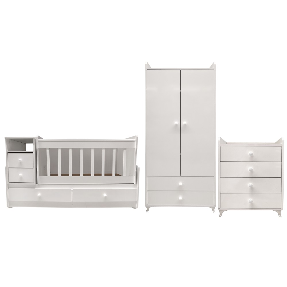 Set dhomë gjumi për fëmijë, krevat, dollap, komo, e bardhë, 3 pjesë