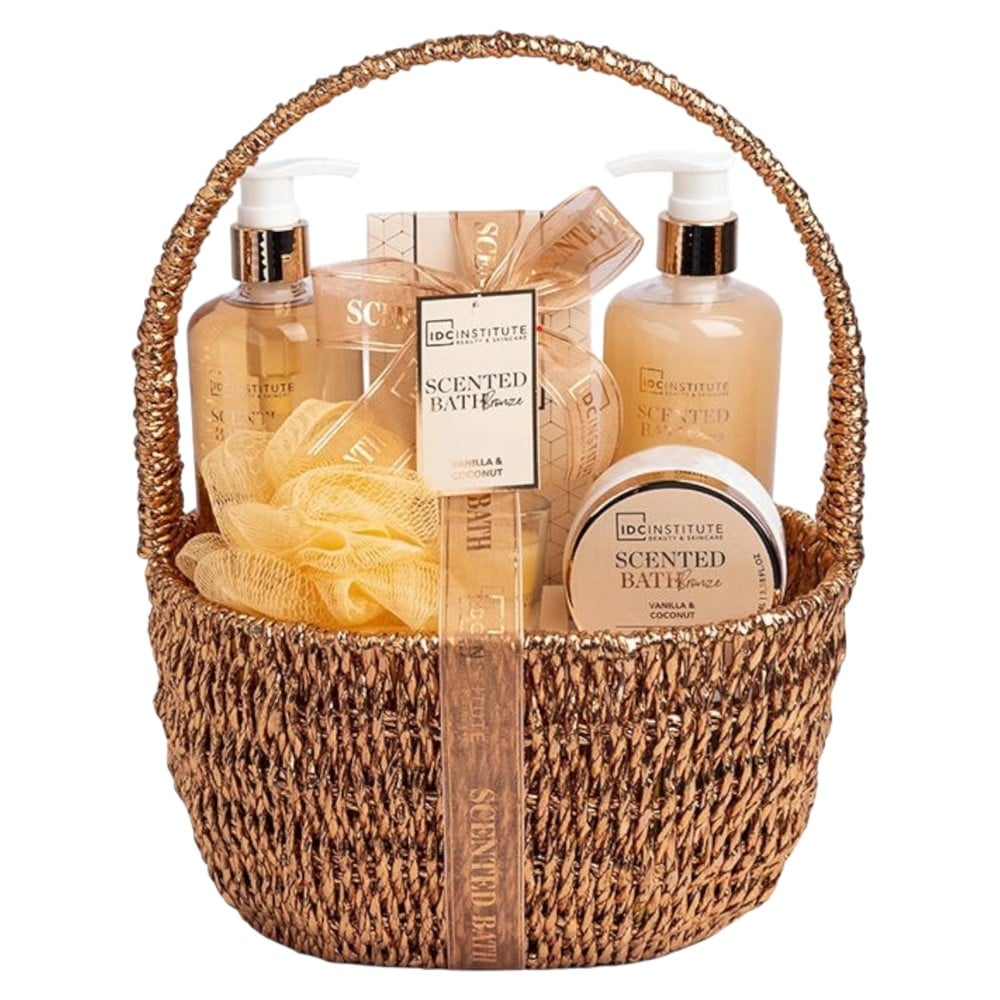 Seti i dushit IDC me shportë ofron një përvojë të plotë relaksimi dhe kujdesi për lëkurën. Ai përfshin 300 ml xhel dushi dhe 300 ml bubble bath për pastrim dhe freski, 100 ml lotion trupi për hidratim, 100 gr kripë dushi për relaksim, një qiri për atmosferë të ngrohtë dhe një sfungjer për aplikim të lehtë. E gjitha vjen e paketuar në një shportë elegante, perfekte për t'u bërë dhuratë ose për të shijuar një moment qetësie për veten.