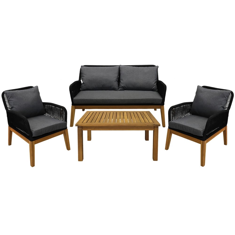 Ngjyrat kafe dhe e zezë e bëjnë këtë set të përputhet lehtësisht me shumë dekore të ndryshme dhe ambientet jashtë shtëpisë. Metali i kolltukëve dhe druri i akacias e bëjnë atë të qëndrueshme dhe të përshtatshme për përdorim jashtë, duke e bërë këtë set një zgjedhje të shkëlqyer për verandën tuaj, ballkonin ose kopshtin.