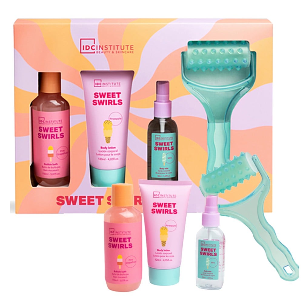 Seti i kujdesit për trupin IDC Sweet Swirls përmban produkte të pasura dhe aromatike për një përvojë të veçantë relaksuese. Pakoja përfshin Bubble bath 150 ml, që krijon shkumë të butë dhe aromatike, Body lotion 120 ml, që ushqen dhe hidraton trupin tuaj, dhe Body spray 50 ml, për freski të menjëhershme. Pjesë e këtij seti është gjithashtu një rul masazhues, që ndihmon në relaksimin e trupit dhe lehtësimin e stresit. E përsosur për t'u kujdesur për lëkurën tuaj dhe për t'u ndjerë e freskët dhe e qetë gjatë gjithë ditës.