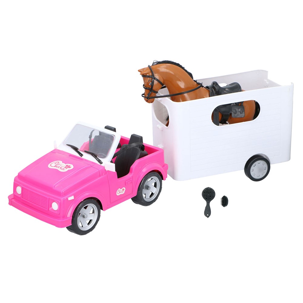 Set lodër për fëmijë, i cili përmban një makinë lodër, një trailer për transportimin e kuajve, një kalë, një krehër për kuaj dhe një furçë. Përdoret për të luajtur dhe për argëtimin e fëmijëve në mënyrë edukative përmes lojës. Ndihmon në zhvillimin e imagjinatës dhe kreativitetit, zhvillimin e aftësive motorike dhe zhvillimin e aftësive të të mësuarit tek fëmijët e vegjël. Materiali përbërës dhe boja nuk kanë përmbajtje toksike apo të dëmshme për fëmijët dhe produkti është i çertifikuar për siguri në përdorim. Ky produkt është i përshtatshëm për përdorim nga fëmijë mbi 3 vjeç.