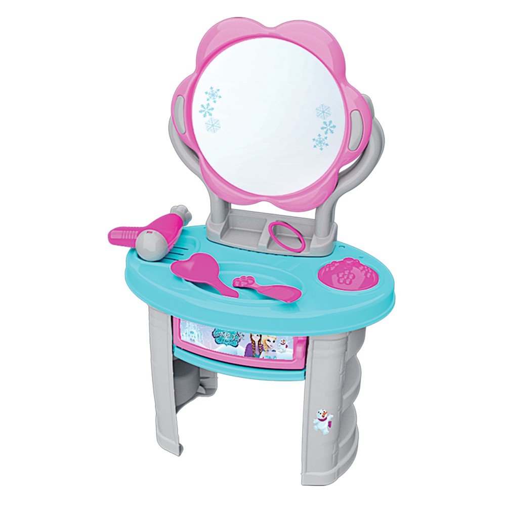 Set me aksesorë kozmetike lodër për fëmijë, i cili përmban një pasqyrë, një tharëse flokësh, një pasqyrë dore, një krehër, një kuti makeup-i, një sirtar dhe 2 rafte, prej materiali plastik, në ngjyrë rozë dhe të kaltër. Kjo lodër ndihmon në zhvillimin e aftësive motorike, aftësive të të mësuarit dhe aftësive të të menduarit, dhe nxit zhvillimin e imagjinatës te fëmijët. Materiali përbërës dhe boja nuk kanë përmbajtje toksike apo të dëmshme për fëmijët dhe produkti është i çertifikuar për siguri në përdorim. Ky produkt është i përshtatshëm për përdorim nga fëmijë mbi 3 vjeç.