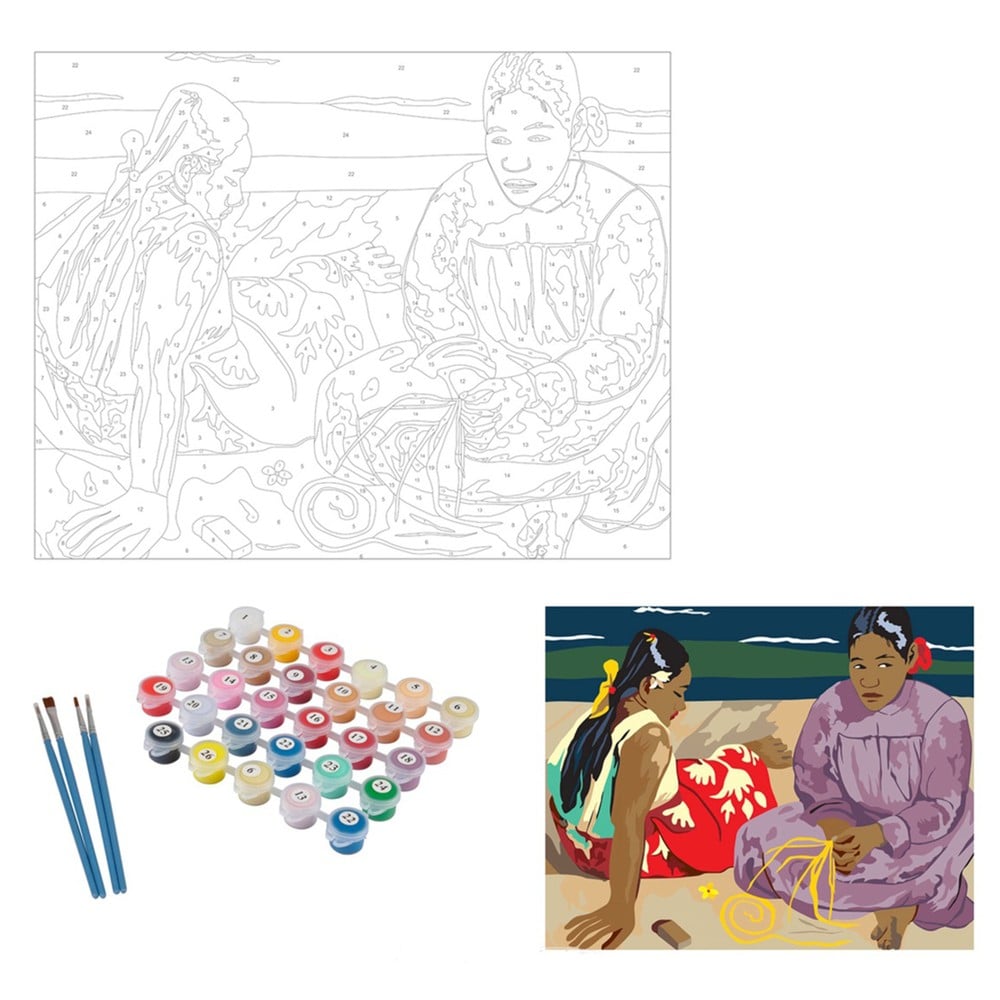 Ky set ngjyrosjeje i frymëzuar nga vepra e famshme e "Tahitian Women" ofron mundësinë e krijimit të një kopje të veprës së famshme, duke përdorur teknikën e ngjyrosjes përmes numrave. Me një përmasë prej 40x50 cm, ky set është ideal për ata që duan të eksplorojnë këtë stil unik dhe të ngjyrosin një ndër pikturat më të njohura në botë.Seti përmban gjithçka që ju nevojitet për të krijuar një kopje të përsosur: bojë të cilësisë së lartë, një kornizë të përshtatshme dhe një udhëzues të detajuar që udhëzon çdo hap të procesit të ngjyrosjes. Ky set është një mundësi e shkëlqyer për artistët e rinj dhe entuziastët e artit që të krijojnë një punë arti të mrekullueshme që do të tërheqë vëmendjen.