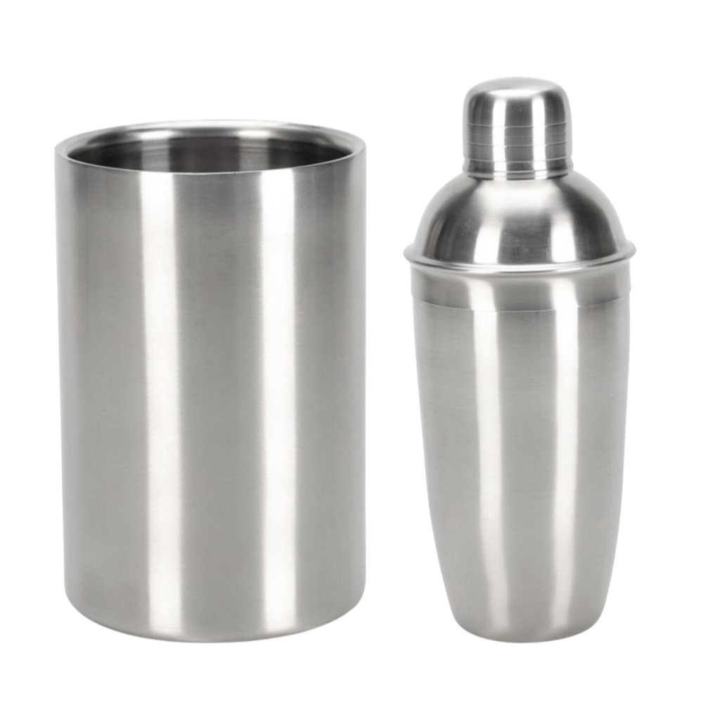 Ky set prej 2 pjesësh për kokteje është zgjedhja ideale për përgatitje të shpejtë dhe profesionale të pijeve të përziera në shtëpi apo në bar. I ndërtuar nga inoks cilësor në ngjyrë argjendi, ofron qëndrueshmëri, pamje moderne dhe rezistencë ndaj konsumit të përditshëm.