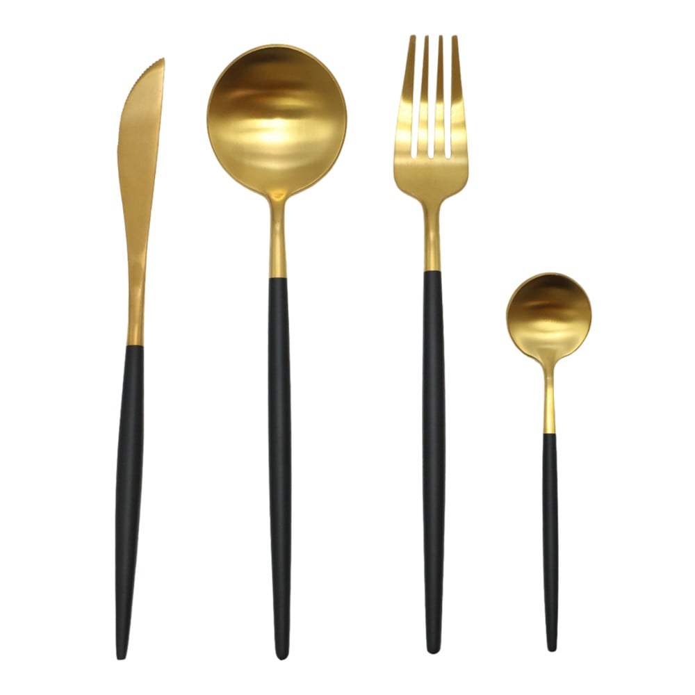 Po vlerësoni:Set servirje lugë/pirunj (PK 4), inoks, e zezë/floriri, 22 / 21 / 13 / 21cm