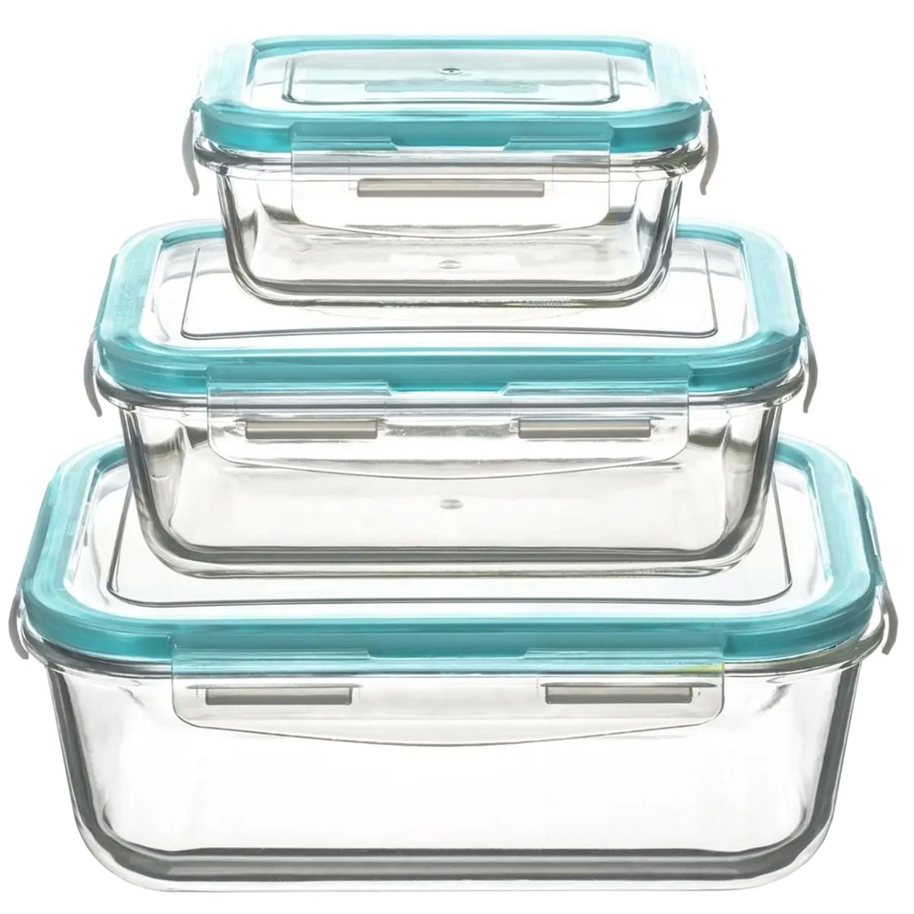 Set tasa hermetik (PK 3), qelq/PP, transparent/blu, 330/800/1730 ml