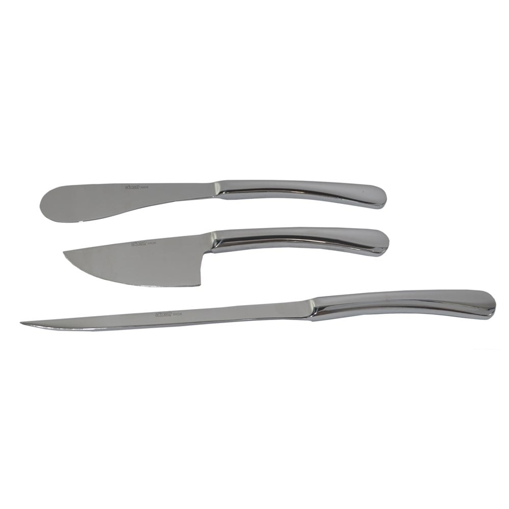 Set thikash djathi permban tre thika ,nje thike te shkurter, nje thike per djathrat e forte dhe nje thike per djathrat e bute. E bere nga nje material inoksi shume cilesor dhe mund te lahen ne lavastovilje.