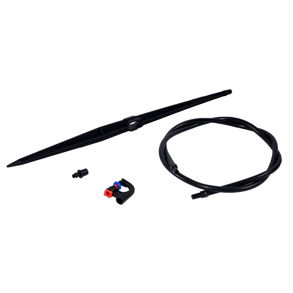 Ky set ujites eshte ideali per ujitjen e bimeve dhe pemeve te kopshtit tuaj. Ka nje kapacitet prej 120L ne ore dhe mbulon nje hapesire me diameter 4m. Ky set mund te lidhet lehtesisht me rrjetin kryesor te ujitjes me adaptor 6 mm dhe eshte rezistent ne presionin 6 bar.