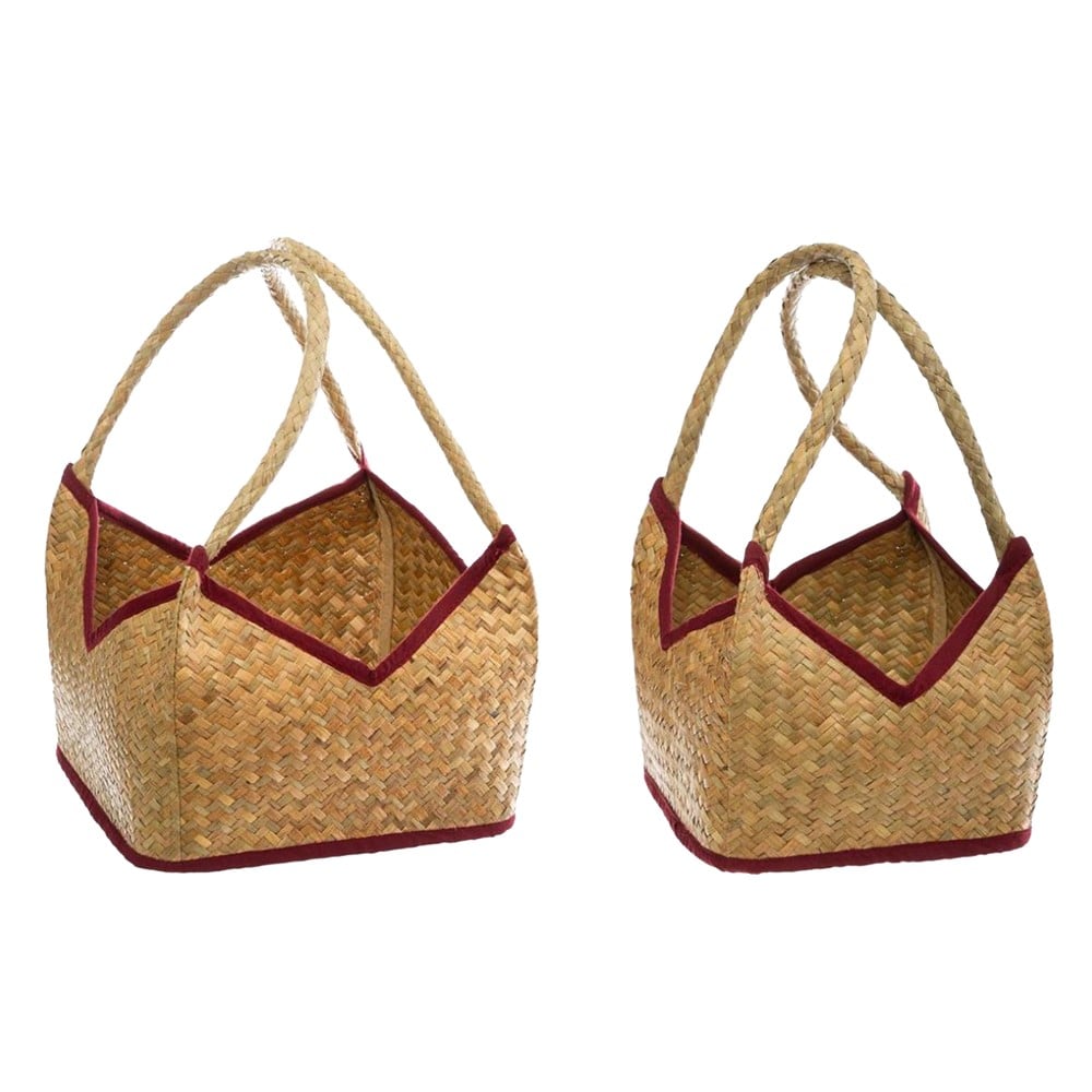 Shportë, set 2 copë, dru shelgu/pambuk, bezhë, 28x28xH23/33 cm; 35x35xH26/36 cm