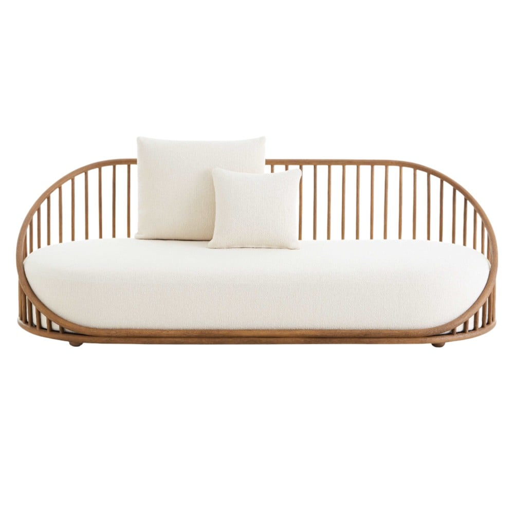 Sofa 3 vendeshe, rattan, ngjyre natyrale, shilte e bardhe, W200.5xD97xH80 cm