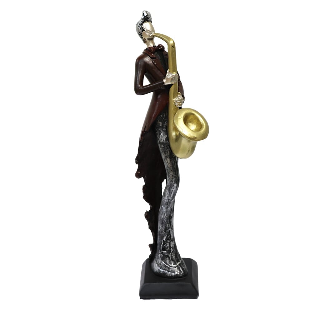 Statuja dekorative "Saxophone Performance" është një veprë e mrekullueshme e realizuar në porcelan, e cila përshkruan një moment të shkëlqyer të performancës me saksofon. Me dimensione 7x7x30 centimetra, kjo statujë është e vogël në madhësi, por e përmbushur me detaje të kujdesura dhe një ndjenjë të veçantë të lëvizjes. Muzikanti është portretizuar me shumë shqetësime dhe pasion për instrumentin e tij, duke transmetuar talentin dhe emocionin e muzikës së tij. Ngjyrat e ndryshme dhe detajet e realizuara me kujdes në porcelan e bëjnë këtë statujë të shkëlqyeshme për të shfaqur në çdo ambient. Kjo statujë është një dhuratë e shkëlqyer për të gjithë pasionistët e muzikës dhe artit.