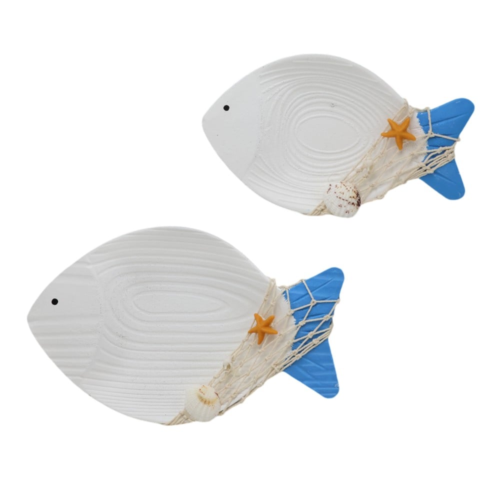 Tabaka dekorative, set 2 copë, rezin, e bardhë/blu, 20x3xH12 cm; 24x3.5xH15 cm