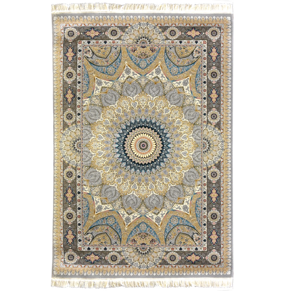 Tapet Persian me përbërje 100% akrilik. Dizajn klasik me kontrast ngjyrash shumë të bukura. Thekët prej pambuku dhe dendësia shumë e madhje prej 2 miljon e 400 mijë nyje për metër katror i japin këtij tapeti cilësi dhe jetëgjatësi. Falë dendësisë shumë të madhe tapeti është i sigurt nga papastërtitë pasi në qoftë se pastrohet menjëherë ato nuk arrijnë të depërtojnë në bazën e tapetit. Gjatësia e fijes 6mm. I rekomanduar të lahet në mënyrë profesionale.