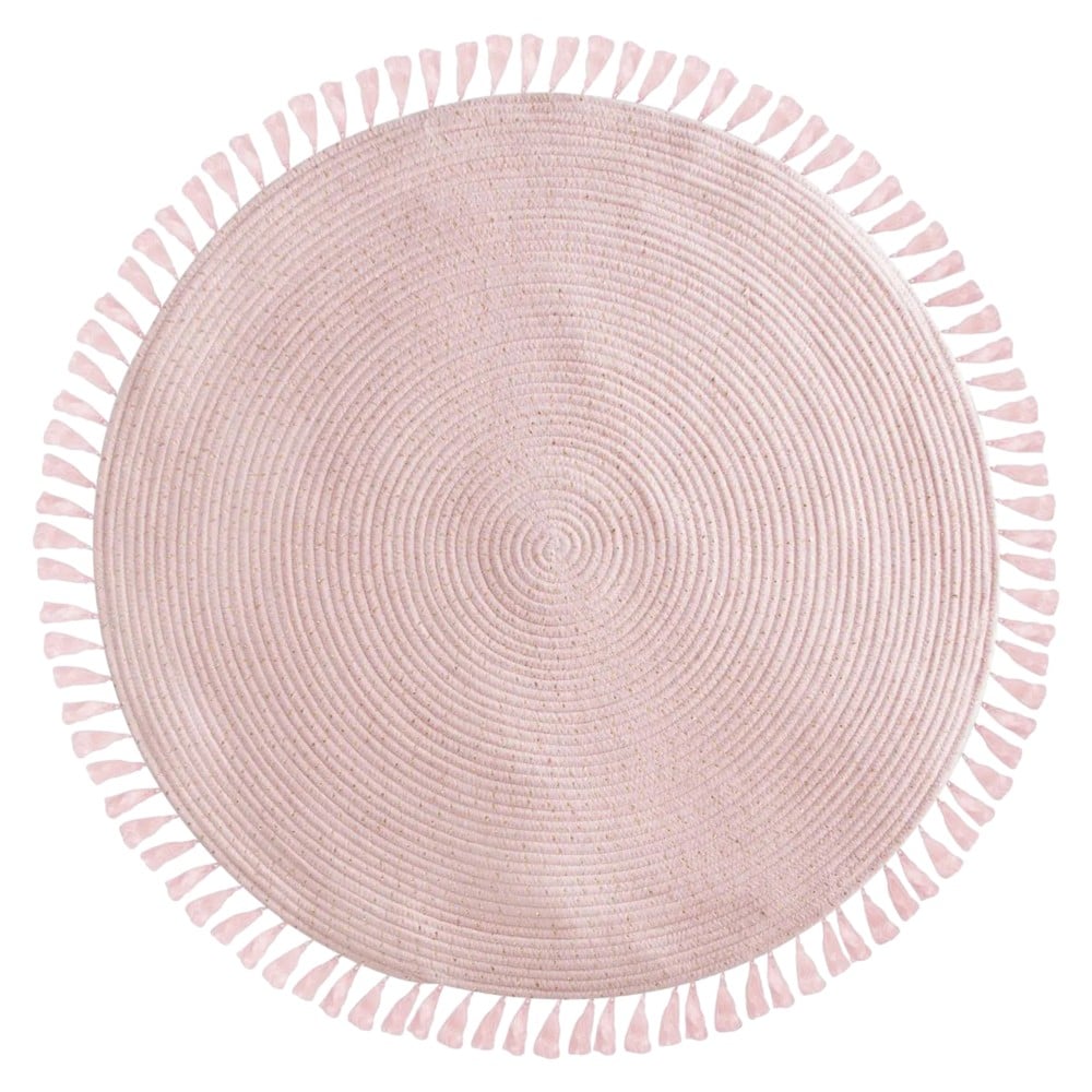 Tapeti rrethor për dhomë fëmijësh, në ngjyrë rozë dhe me thekë, është i bërë nga një përzierje materiali poliestër dhe pambuku për komoditet dhe qëndrueshmëri. Me diametër 90 cm, ky tapet është i përshtatshëm për dhoma të vogla dhe ofron një sipërfaqe të butë dhe të ngrohtë për lojëra dhe aktivitete. Ideale për të krijuar një hapësirë të këndshme dhe të sigurt për fëmijët.